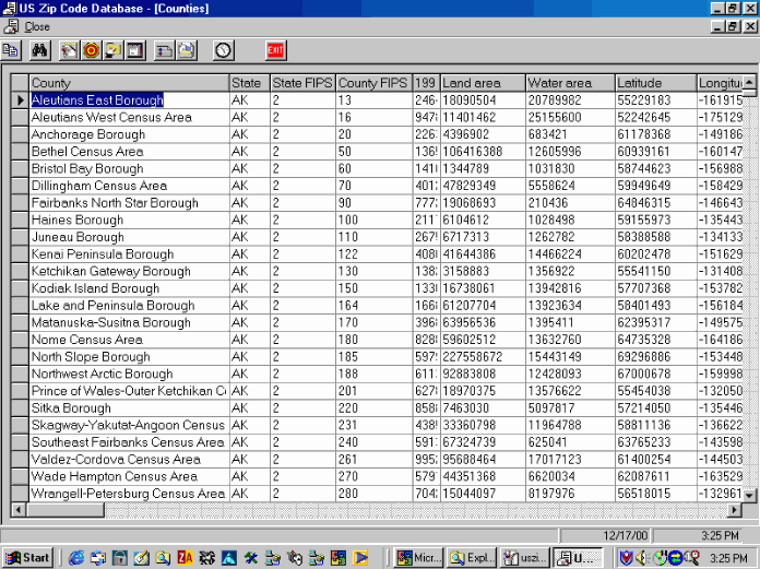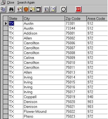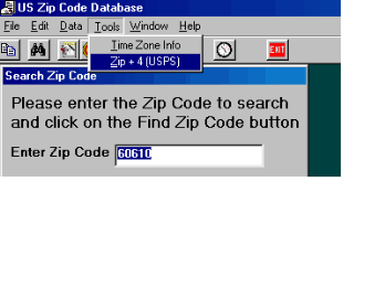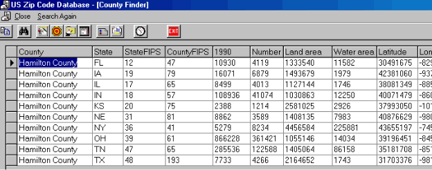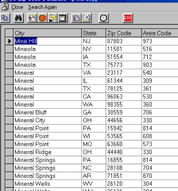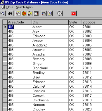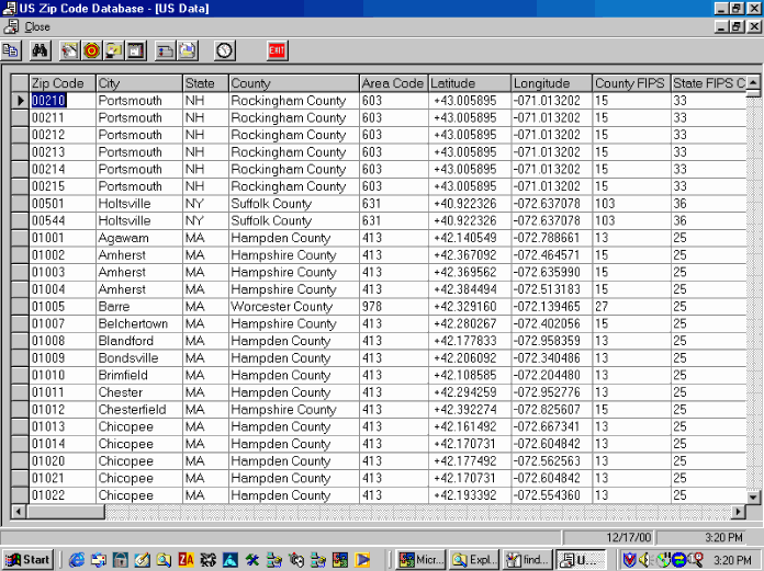 Shown here are some screen shots of some views from the U. S. Zip code Db software: